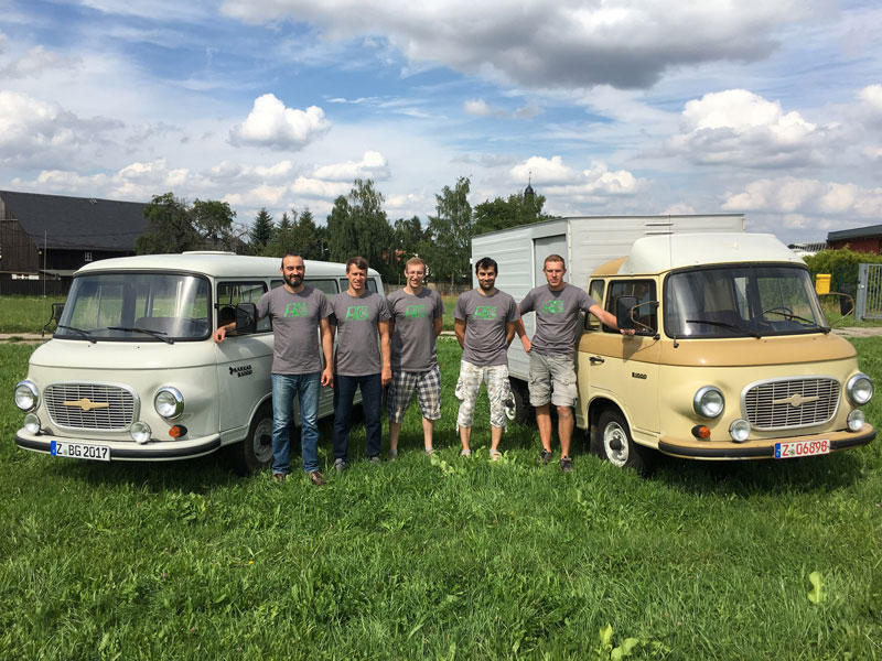 Unser Barkas wurde im Juni 1987 gebaut und ist damit einer der ersten mit der seitlichen Schiebetür. Wir haben ihn im Herbst 2016 in Thüringen geholt. Dort stand er ca. 10 Jahre im Freien. Der Zustand war dementsprechend schlecht aber weitestgehend komplett und original. Wir haben uns für eine Komplettrestauration entschieden. Die Karosserie haben wir sandgestrahlt, geschweißt und im Originalfarbton lackiert, die Technik repariert oder erneuert, die Sitze neu gepolstert und den Himmel neu bezogen. Da wir im August 2017 unsere Reise „Mit dem Barkas nach Burgas“ geplant hatten, mussten wir die Restauration in nur fünf Monaten abschließen. Das ist uns auch gut gelungen.